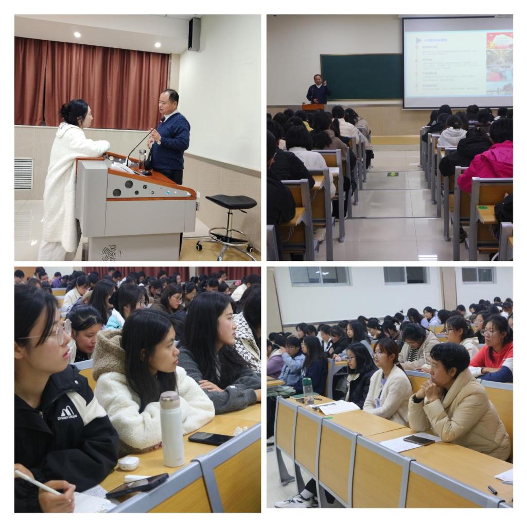 本次报告围绕认识自我、环境分析、职业定位和职业规划四个方面展开。首先,宋老师从“大学期间总体规划”入手,从思想政治、学业、个性发展、身体素质等方面结合生活中的案例逐一分析,给同学们在就业前景发展上提供切实的建议和指导。通过展示教师资格证面试环节各种类型的教学示例及视频,让同学们更加直观的了解了如何准备面试,及面试过程中的注意事项。关于职业定位,宋老师提出“为人师者,必以知识传递知识,以心灵浇灌心灵,以情感唤醒情感,以德行感染德行”。除此之外,宋老师还分享了自己的亲身经历以更好的让同学们了解到专业教师的成长之路。最后,宋玉忠鼓励同学们在校期间努力学习,不断提升自己的综合素质,从大一开始规划,为四年后的就业打好基础。
